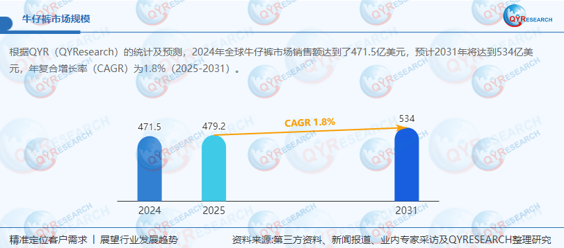 According to QYResearch's statistics and predictions, the global denim market sales reached 47.15 billion US dollars in 2024, and are expected to reach 53.4 billion US dollars in 2031, with a compound annual growth rate (CAGR) of 1.8% (2025-2031). At the regional level, the Chinese market has undergone rapid changes in the past few years, with a market size of 11.6 billion US dollars in 2024, accounting for about 24% of the global market. It is expected to reach 19 billion US dollars in 2031, and the global market share will reach 35% by then.